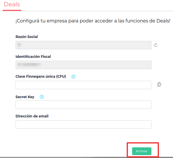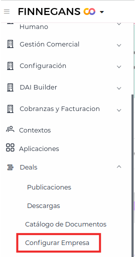Menú > Deals > Configurar empresa