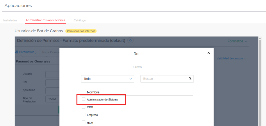 - En el parámetro Rol seleccionar “Administrador de Sistemas” y aceptar.