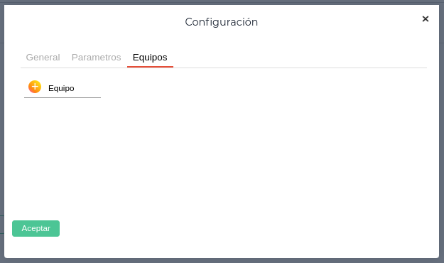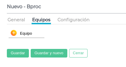 La solapa de equipos es para restringir o darle seguridad a este BProc y determinar qué equipos están autorizados a usarlo, en caso de no seleccionar ningún equipo, será visible por todos.
