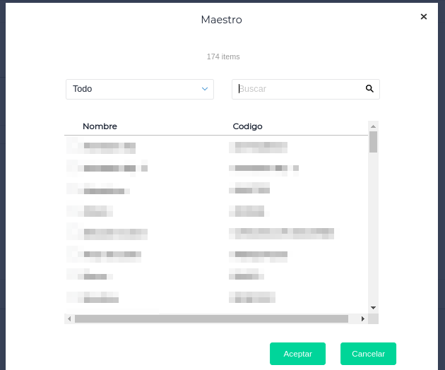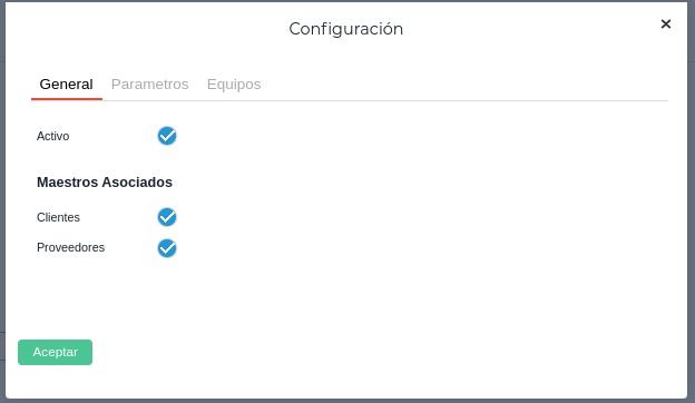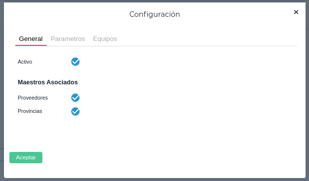 - Dentro de la lista de maestros definidos como estándar, permite a un usuario del cliente, deshabilitar y volver a activar si lo desea una o varias opciones.