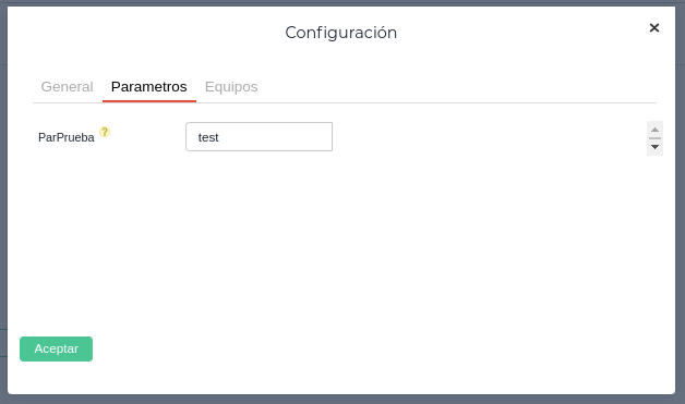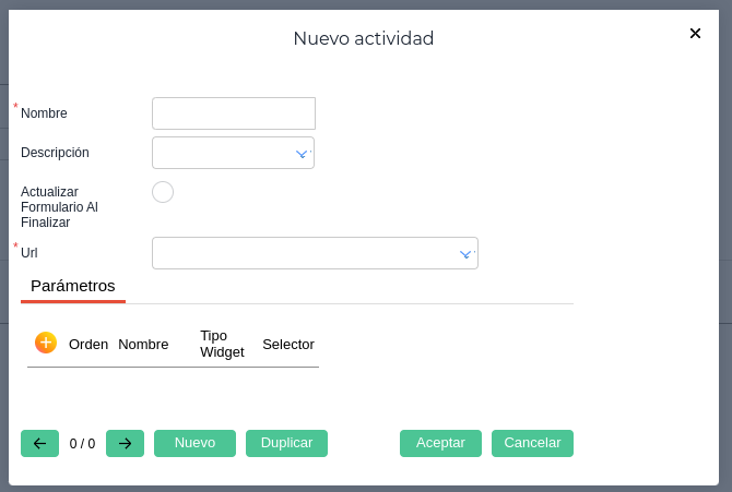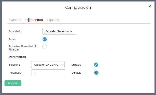 } - Parámetros: se pueden agregar parámetros por actividad.