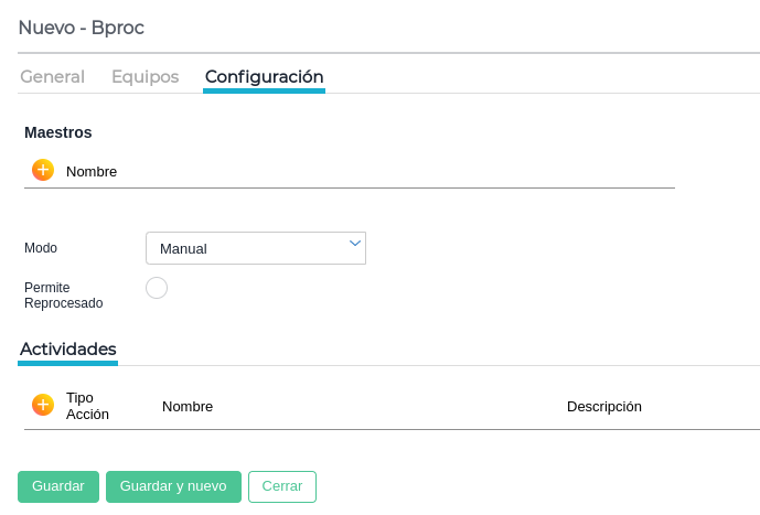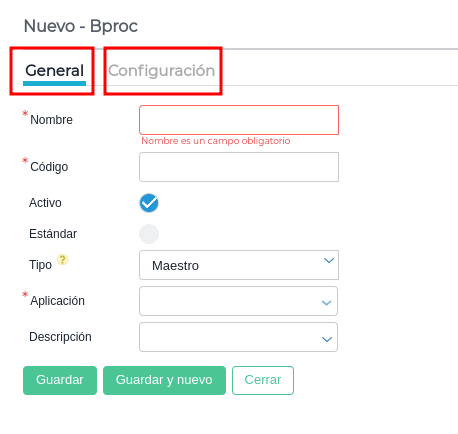 - Tipo: en este campo elegimos el tipo de bproc que estamos creando, en este caso seleccionamos el de “Maestro”.