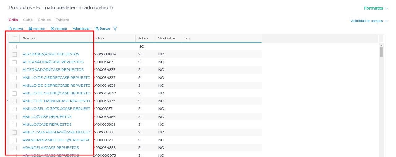 - Al ingresar a “Productos” seleccionar sobre el nombre del cual quieras ejecutar el bproc. Por ejemplo seleccionamos en “ALFOMBRA//CASE REPUESTOS”.