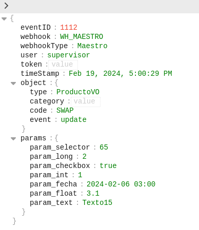 Al ocurrir un evento monitoreado por un Bproc sobre un Maestro, se puede disponer de un Webhook para que ejecute automáticamente una operación determinada.