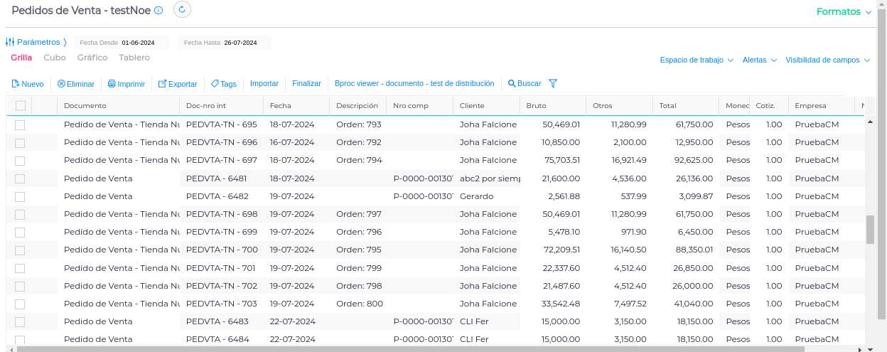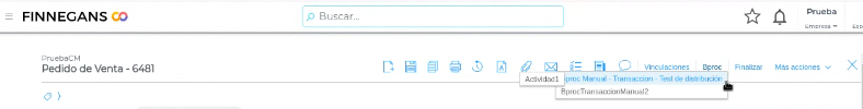 - Ingresar en el documento que hayas seleccionado al crear el bproc (por ejemplo Pedido de Venta).