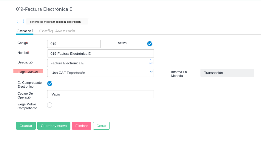 - Revisar que el tipo de comprobante impositivo sea el correcto.