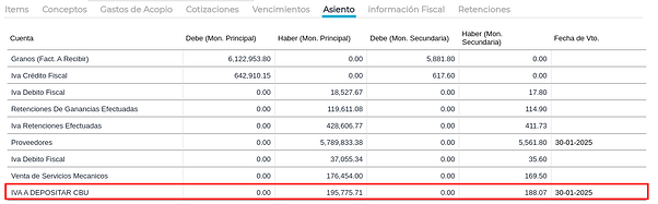 El cálculo que realiza el sistema para definir el IVA a depositar en CBU resulta de la diferencia entre el IVA de 10.5% y el IVA scoring SISA.