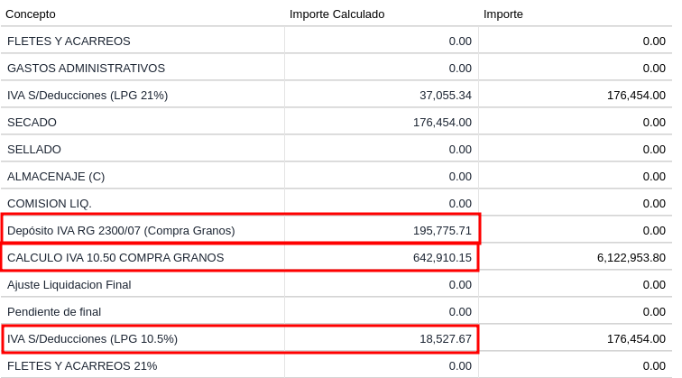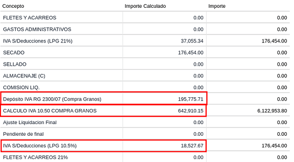 Sobre el total bruto de la liquidación se calcula el IVA del producto (10.5% IVA)