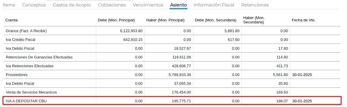 De esta forma se puede diferenciar el IVA CBU en el módulo de tesorería para generar la orden de transferencia a tercero.