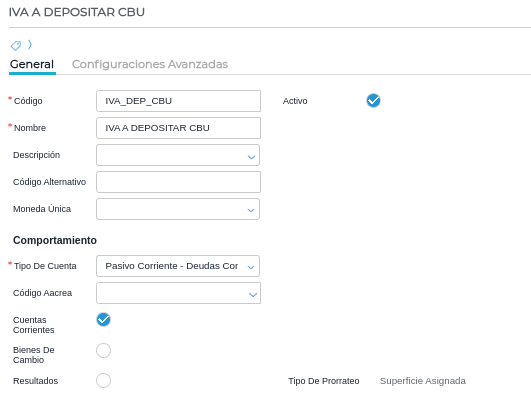 Dar de alta una nueva cuenta para diferenciar el IVA a depositar que impacte en cuenta corriente: