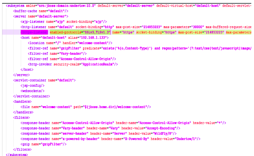 Se debe configurar los protocolos permitidos de comunicación en el standalone.xml