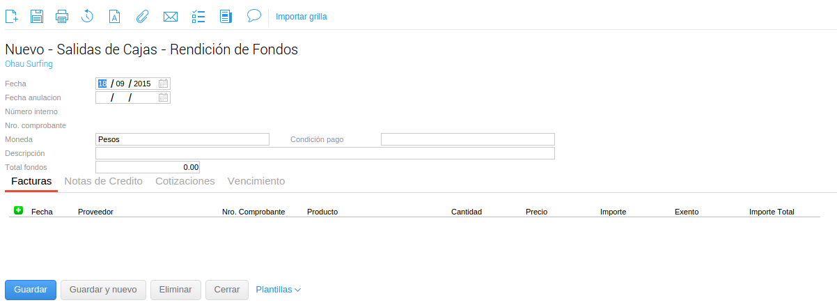 Total Fondos: Se completa automáticamente al cargar los ítems.
