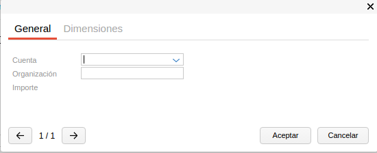 En el campo Organización, sólo se completa cuando la cuenta pertenece a un tercero. Este campo no suele utilizarse.