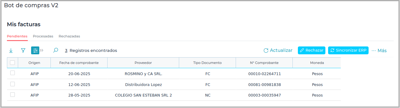 Caso 1 - Bot de compras recibe las facturas del fisco.