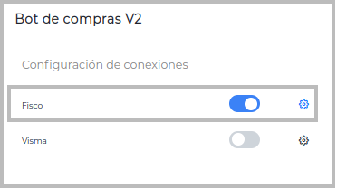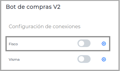 1-Ir Aplicaciones–> Bot de compras–> Configuración de conexiones Configuración de Bot de compras, no tiene el check en el campo Fisco, deberá poder recibir las facturas desde el portal de Proveedores.