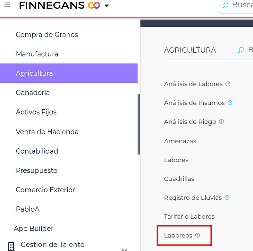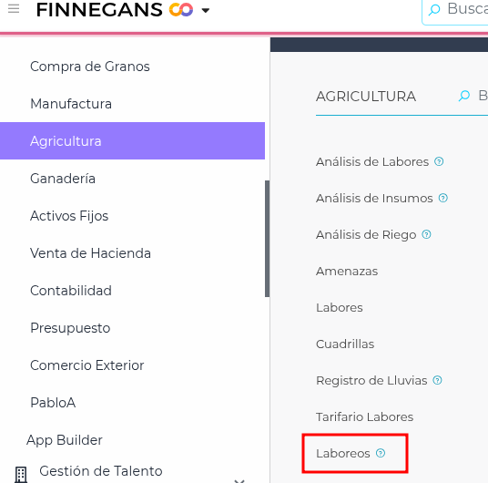 Para ver esta nueva funcionalidad se accede a través de Menú Desplegable → Gestión Empresarial → Agricultura → Gestión → Laboreos.
