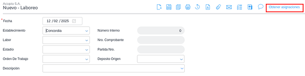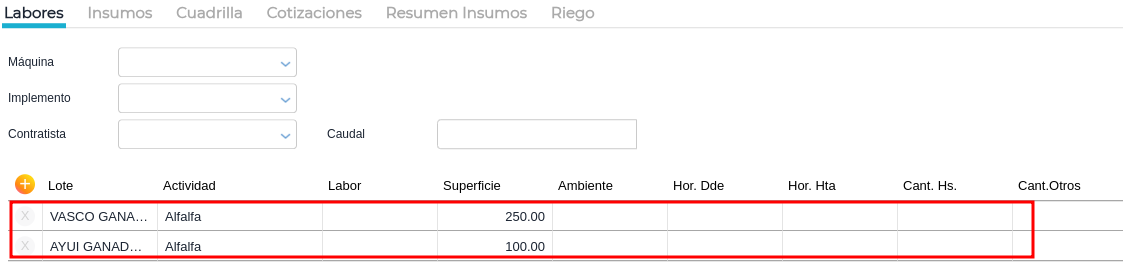 Una vez aquí se procede a cargar un nuevo laboreo.