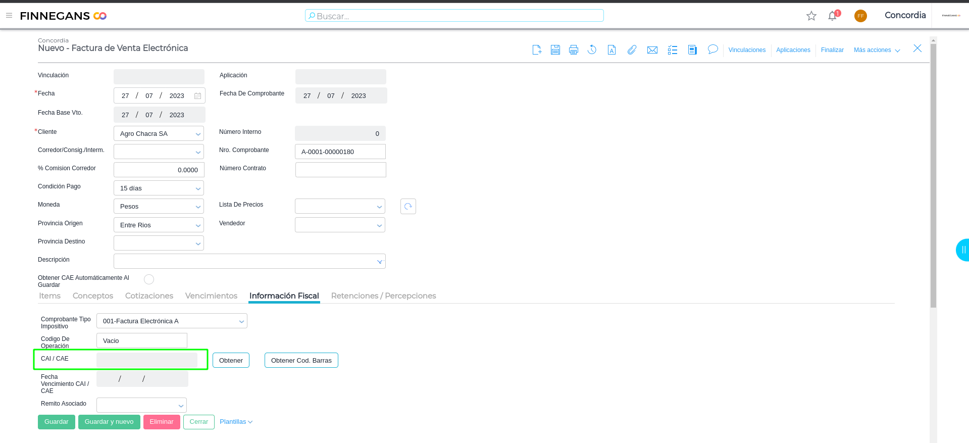 Una vez realizado esto, cargar la factura de AFIP manualmente, asignando el CAE y el número de comprobante otorgado.
