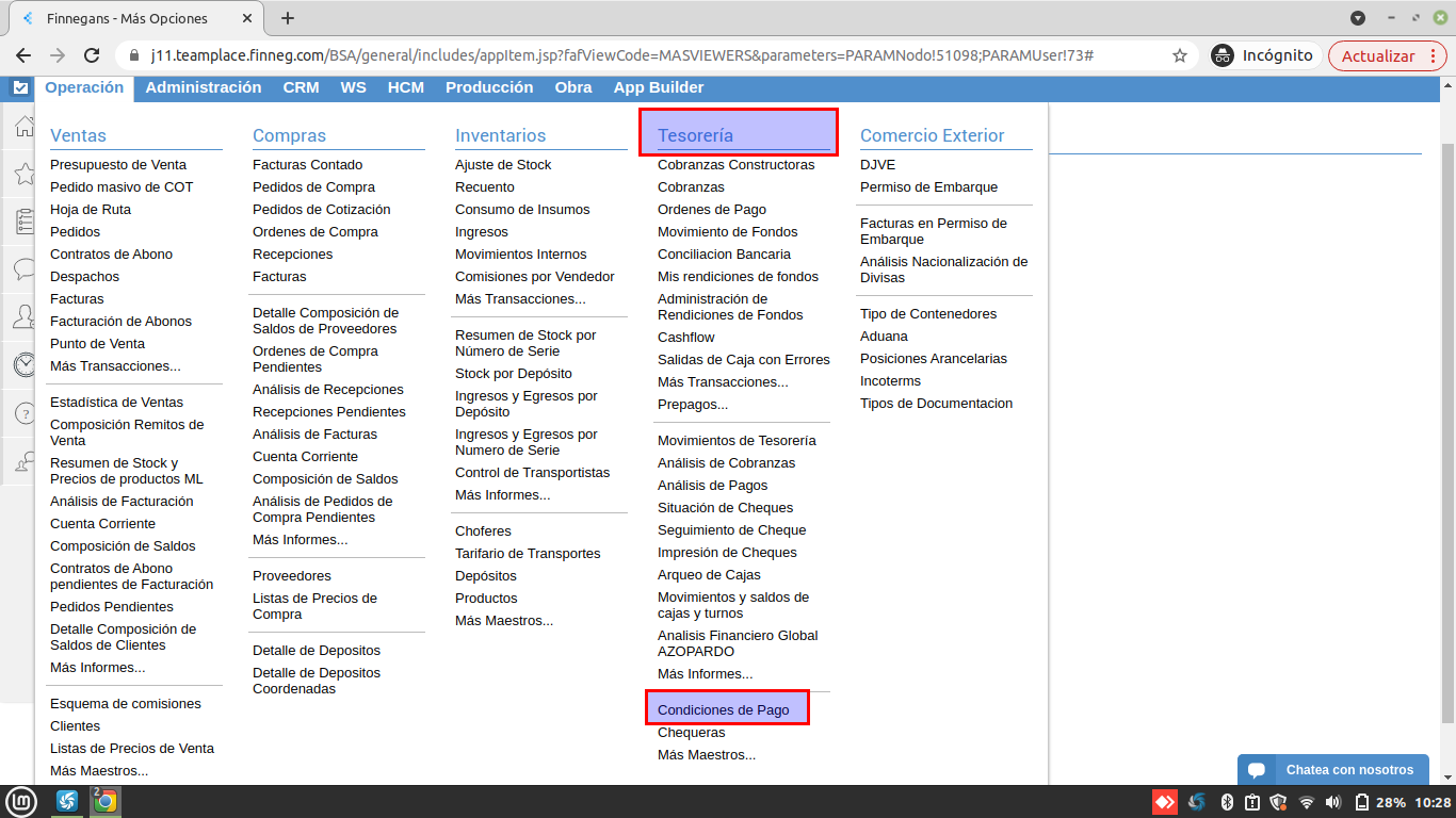 Ir al maestro de “Condiciones de Pago”: