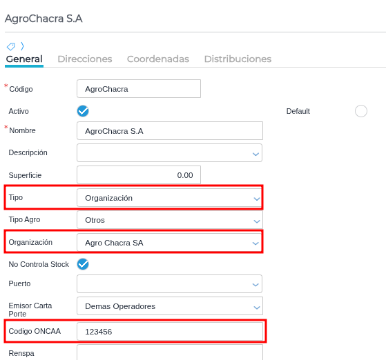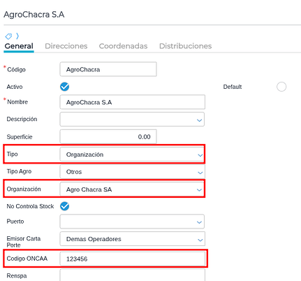 Para el circuito de venta hay que informar la planta donde se va a enviar el producto de derivados granarios. Desde el maestro de depósitos, definir el código de planta destino vigente. El depósito debe ser de tipo “organización” y se debe definir la organización a la que pertenece el depósito (destinatario):