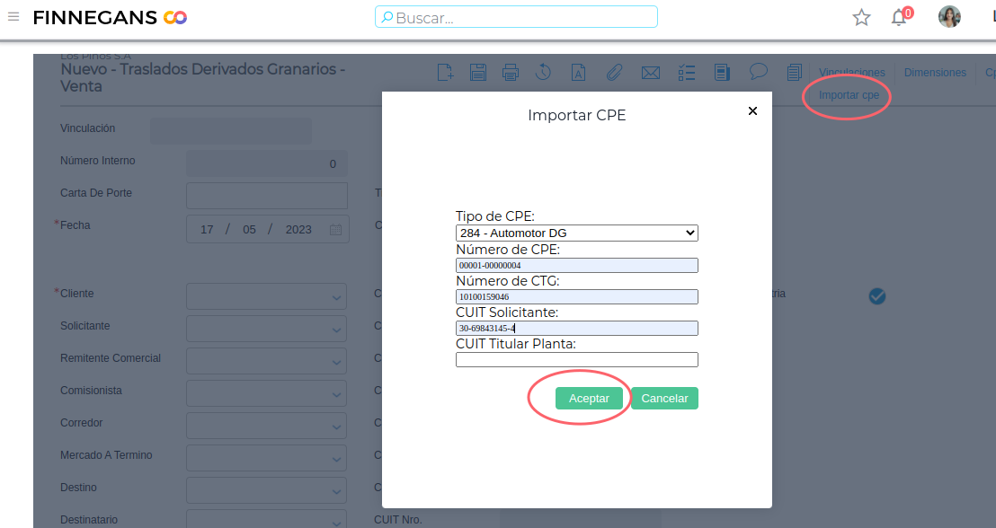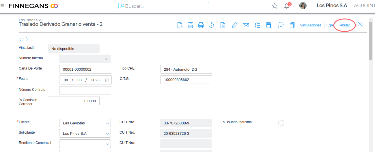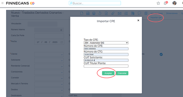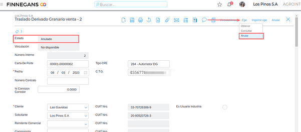 Esta funcionalidad tiene como objetivo facilitar al usuario la gestión de cartas de porte granaria desde Finnegans a través del web service de ARCA.