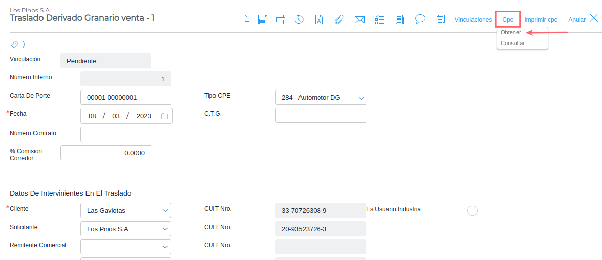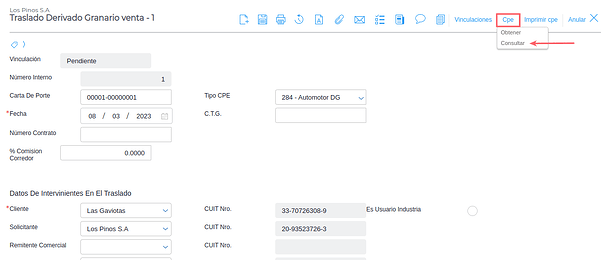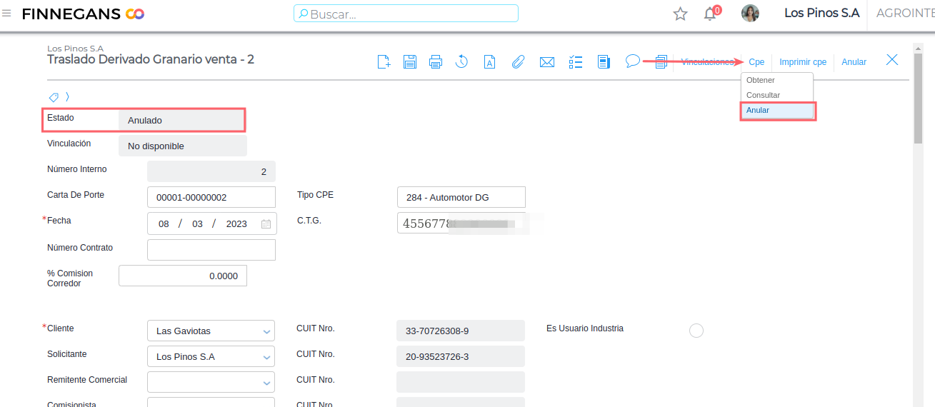 Anular CPE derivados granarios web service