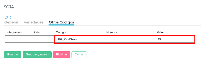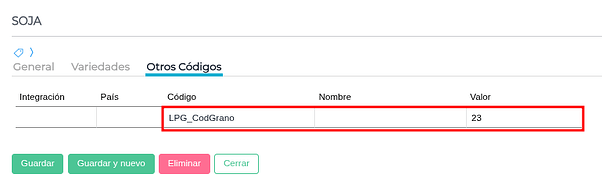 Maestro de especies - Asignar el código adicional a la especie origen del producto derivado granario