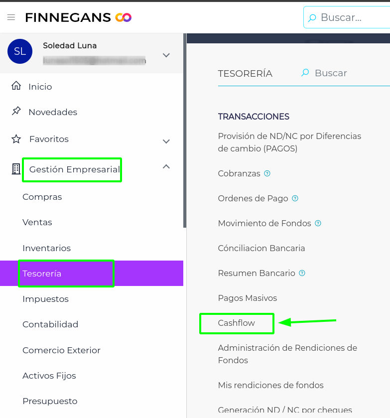- Ruta: Menú - Gestión Empresarial - Tesorería - Casflow