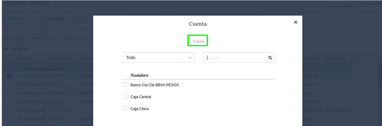 No visualizo todas las cuentas al querer asignar cuenta a una transacción dentro del cashflow.