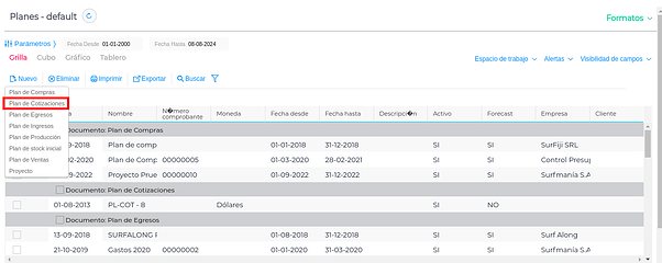 En ella se muestran aquellos movimientos incluidos en planes que tengan la opción Incluir en forecast activada.