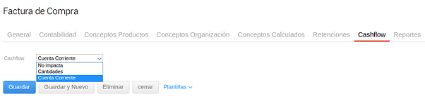 - No Impacta: Los documentos en los que se selecciona esta opción no son incluidos dentro del cashflow, sin importar su impacto en cuentas corrientes o contabilidad.