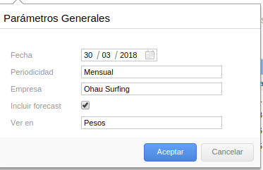 Esta solapa sólo se habilita al marcar la opción Incluir Forecast en los parámetros del informe.
