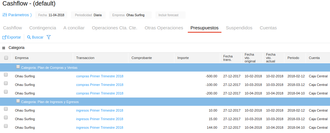 Para más información respecto a la visualización de movimientos presupuestados en el cashflow, referirse al siguiente documento.