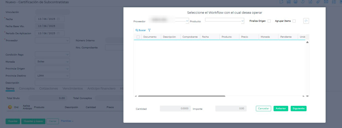 Al generar un contrato de subcontratistas y, posteriormente, intentar generar la certificación correspondiente mediante el asistente, no logro visualizar el contrato previamente creado
