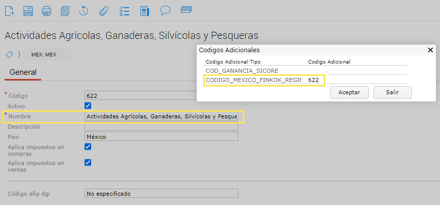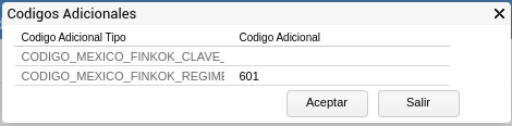 Además, se creó el código adicional: CODIGO_MEXICO_FINKOK_REGIMEN_FISCAL dentro de las categorías fiscales que es el código que se va a informar al SAT.