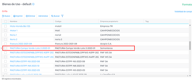 Para que se genere el bien de uso, primero se debe configurar la sementera.