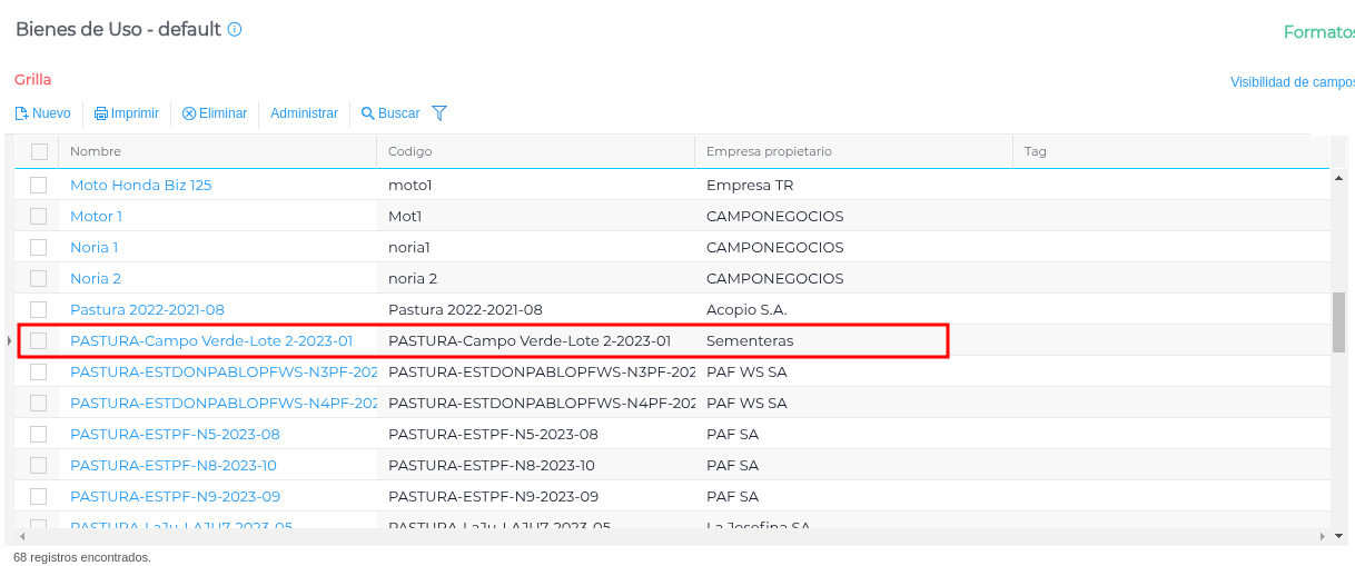 Tras realizar estos pasos, se va a obtener un bien de uso, el cual se encuentra accediendo a través de Menú Desplegable → Activos Fijos → Bienes de uso: