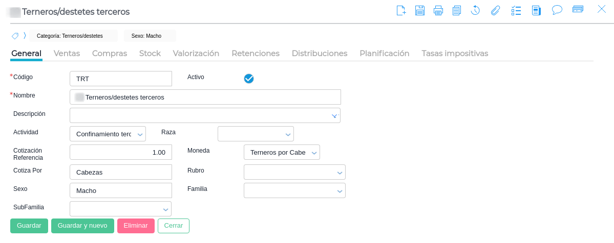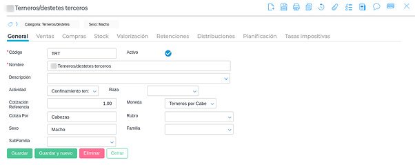 - Menú >> Ganadería >> Categorías >> Nuevo