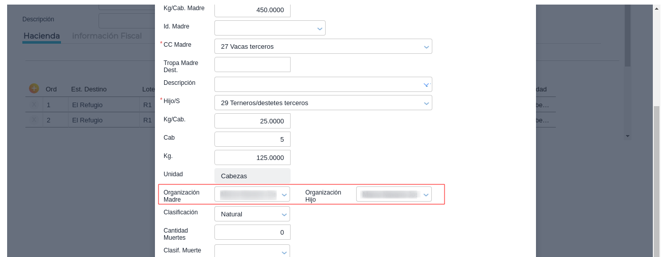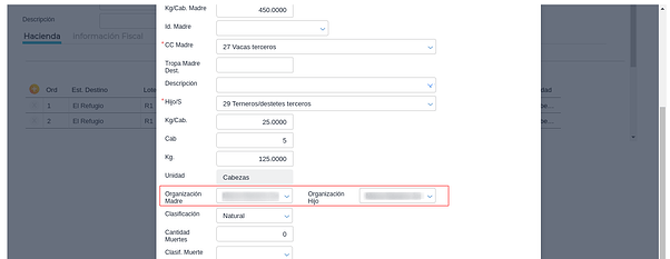 b. En el documento es necesario identificar la Organización Madre (dueños de la hacienda) y Organización Hijo cuando los terneros obtenidos en la capitalización sean de terceros. En el caso de que los terneros obtenidos sean propios, no se debe completar el campo, dejándolo vacío.