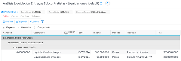 Análisis de Liquidación de Entregas Subcontratistas