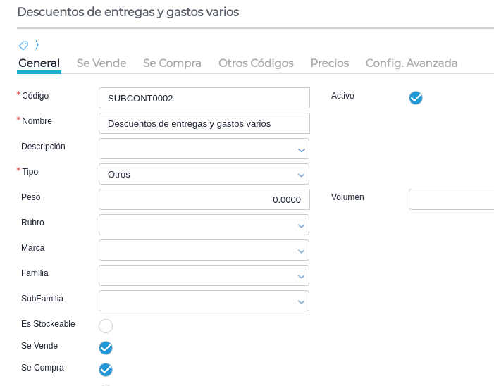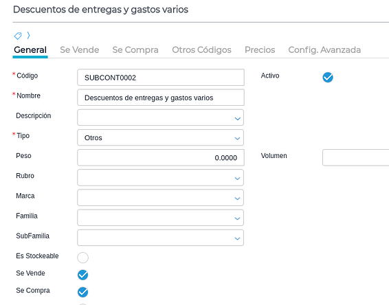 Se puede generar un producto genérico de descuentos de entregas y gastos varios. En estos casos se incluirá una unidad negativa de este producto en la Factura de compra del subcontratista.