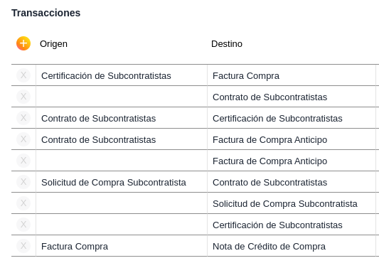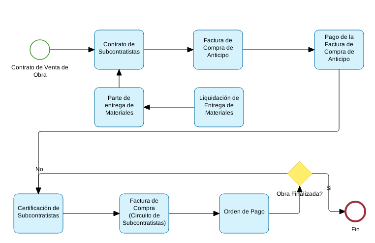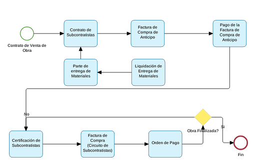 - Ejemplo de un workflow estándar de Circuito de Subcontratistas