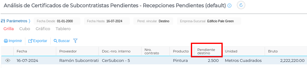 Este reporte incluye todos los ítems de los contratos cargados en el sistema que todavía no han sido certificados.