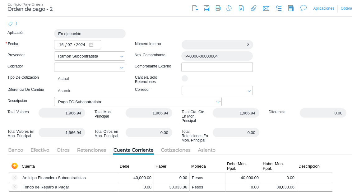 Se abre el formulario de Orden de Pago.