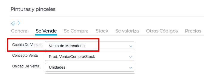 Los insumos están ingresados en el sistema como productos de compra. Si se debe realizar un parte de entrega a subcontratistas, es necesario completar la solapa Ventas del maestro de productos. La cuenta asociada será la de “Venta de mercadería”, por ejemplo: