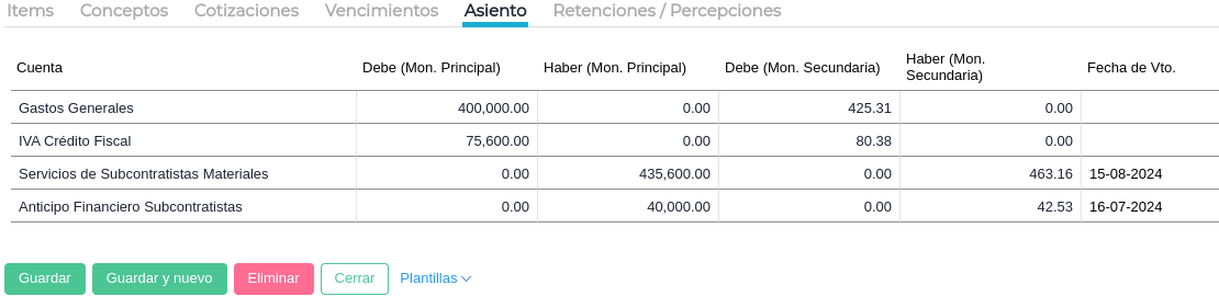 En la solapa “Asiento” puede verse el asiento generado.