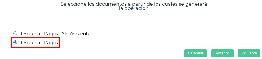 Se oprime el botón “Nuevo” y luego “Orden de pago”. Se abre el asistente: