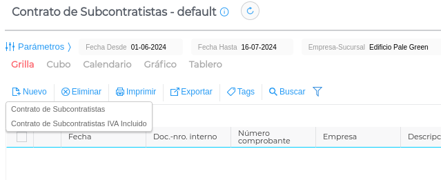 Se realiza con asistente en base al contrato de subcontratista y se guarda.
