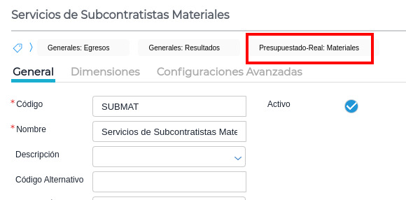 - Para que el impacto del servicio contratado sea en materiales, se configura la cuenta contable “Servicios de Subcontratistas Materiales” con el TAG presupuestado-real materiales.