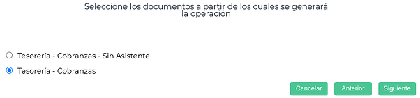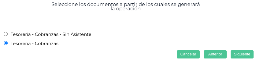 Se hace clic sobre el botón “Nuevo” y se selecciona la opción de workflow “Tesorería - Cobranzas”.